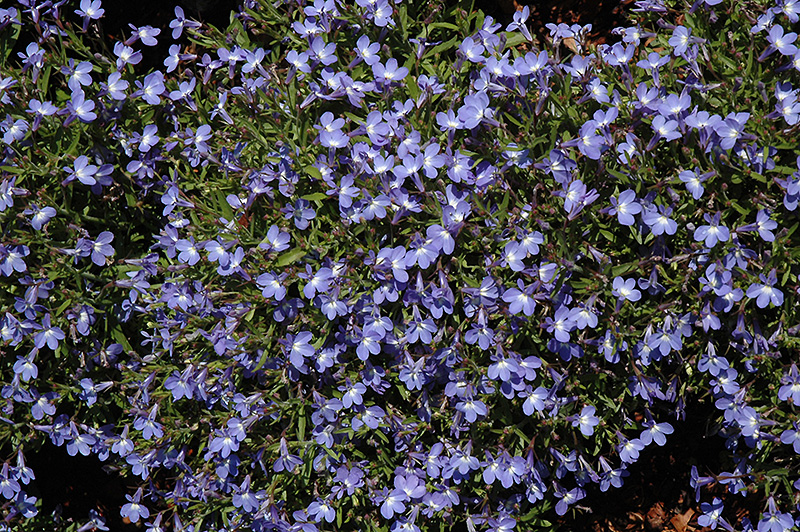 Sunbelia Compact Sky Blue Lobelia will grow to be about 10 inches tall at maturity, with a spread of 10 inches. When grown in masses or used as a bedding plant, individual plants should be spaced approximately 8 inches apart. Its foliage tends to remain low and dense right to the ground. Although it's not a true annual, this fast-growing plant can be expected to behave as an annual in our climate if left outdoors over the winter, usually needing replacement the following year. As such, gardeners should take into consideration that it will perform differently than it would in its native habitat.