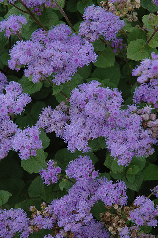 Blue Mink Flossflower will grow to be about 12 inches tall at maturity, with a spread of 8 inches. When grown in masses or used as a bedding plant, individual plants should be spaced approximately 6 inches apart. Its foliage tends to remain dense right to the ground, not requiring facer plants in front. This fast-growing annual will normally live for one full growing season, needing replacement the following year.