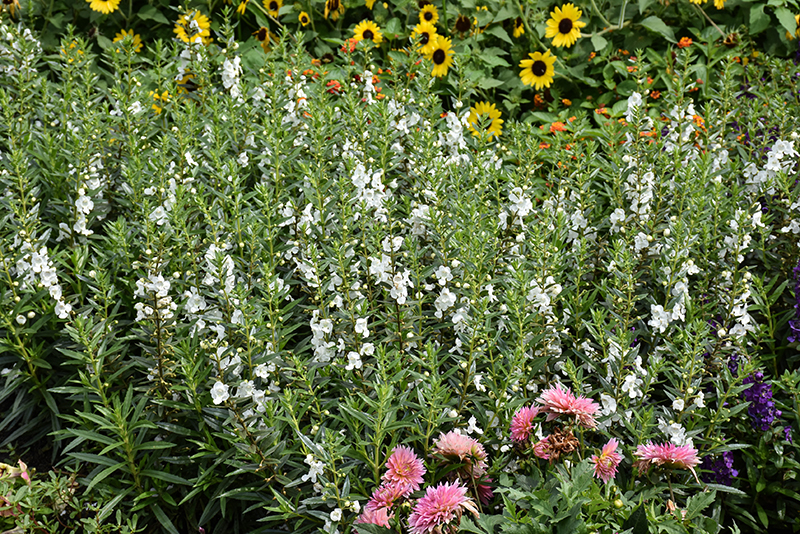 Angelface® White Angelonia will grow to be about 20 inches tall at maturity, with a spread of 14 inches. When grown in masses or used as a bedding plant, individual plants should be spaced approximately 12 inches apart. Although it's not a true annual, this fast-growing plant can be expected to behave as an annual in our climate if left outdoors over the winter, usually needing replacement the following year. As such, gardeners should take into consideration that it will perform differently than it would in its native habitat.