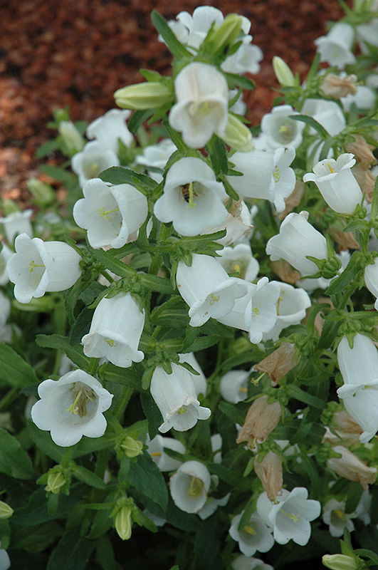 Lovely white bells on a strong, multi-stem branching plant; this plant is a biennial; prefers consistent moisture, but not wet soil