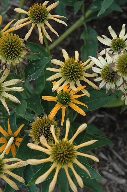 Mystical Amber Mist Coneflower will grow to be about 14 inches tall at maturity extending to 20 inches tall with the flowers, with a spread of 12 inches. Its foliage tends to remain dense right to the ground, not requiring facer plants in front. It grows at a medium rate, and under ideal conditions can be expected to live for approximately 10 years. As an herbaceous perennial, this plant will usually die back to the crown each winter, and will regrow from the base each spring. Be careful not to disturb the crown in late winter when it may not be readily seen!