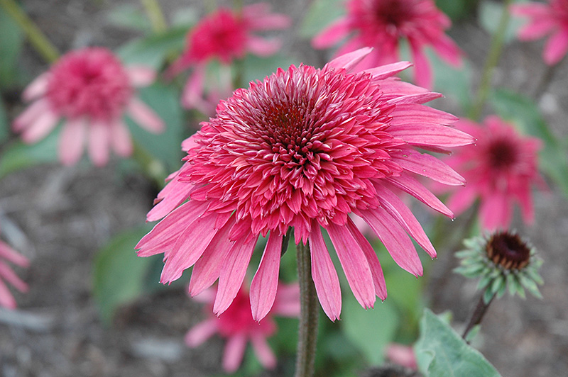 Stately double blooms of hot pink, with deep rosy-red centers on strong stemmed, well branched plants; attracts pollinators and feeds the birds in winter; use in naturalized areas with other native plants
