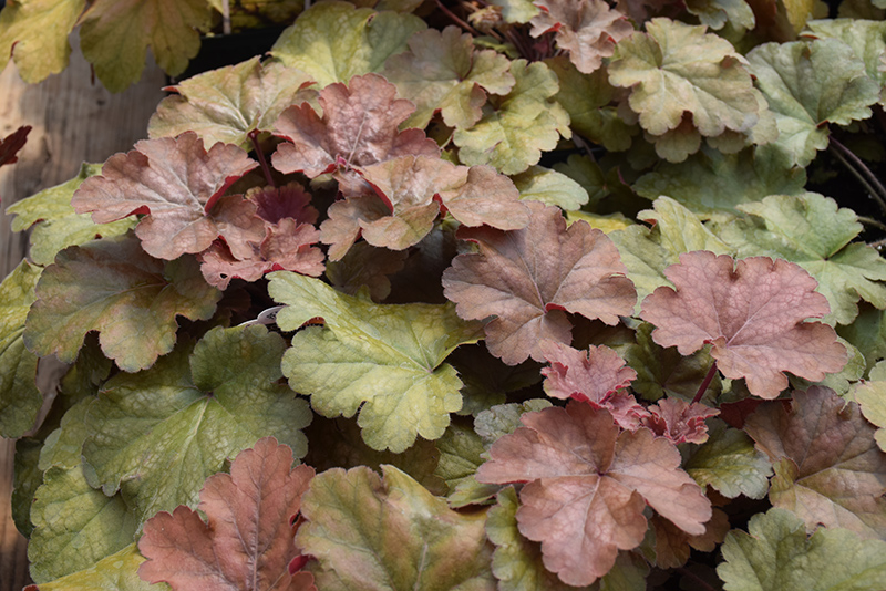 Carnival Coffee Bean Coral Bells will grow to be about 12 inches tall at maturity, with a spread of 14 inches. When grown in masses or used as a bedding plant, individual plants should be spaced approximately 12 inches apart. Its foliage tends to remain dense right to the ground, not requiring facer plants in front. It grows at a medium rate, and under ideal conditions can be expected to live for approximately 10 years. As an evegreen perennial, this plant will typically keep its form and foliage year-round.