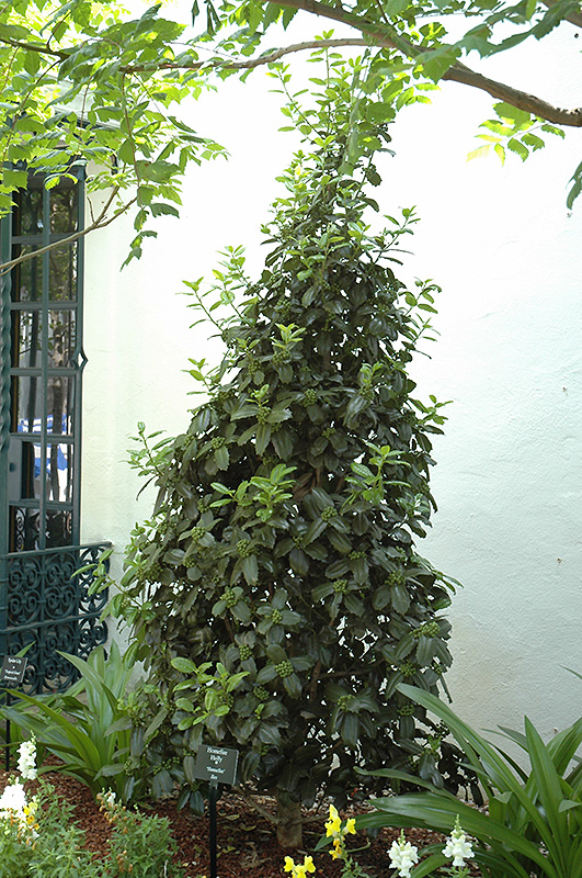 This handsome holly is suitable for use as a screen with its tidy, pyramidal habit; splendid rich, dark green, glossy leaves and abundant red fruit in winter make this a great addition to the landscape