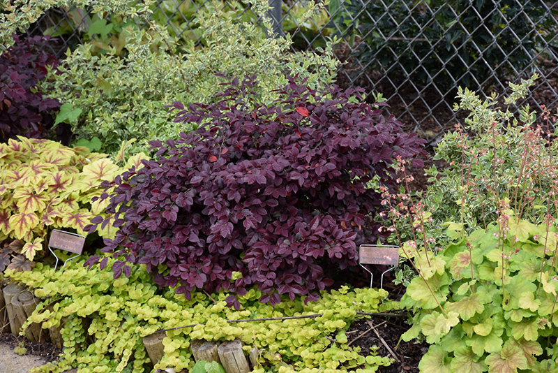 A pretty spring-blooming dwarf variety with stunning pink strap-like flowers literally smothering the plant, ruby red new foliage matures to burgundy with a purple cast; an easy to grow and well-behaved shrub for general garden use