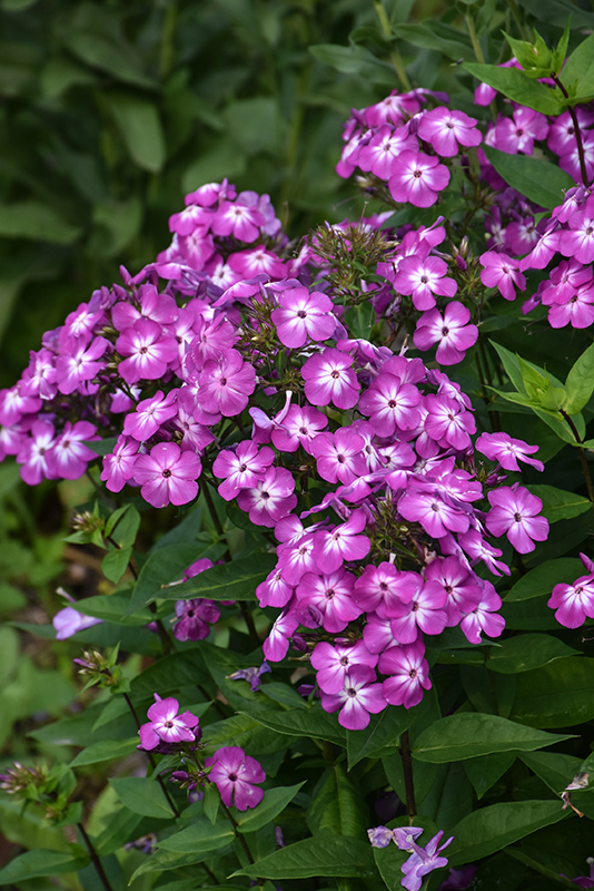 Flame Purple Eye Garden Phlox will grow to be about 24 inches tall at maturity, with a spread of 24 inches. When grown in masses or used as a bedding plant, individual plants should be spaced approximately 20 inches apart. It grows at a medium rate, and under ideal conditions can be expected to live for approximately 10 years. As an herbaceous perennial, this plant will usually die back to the crown each winter, and will regrow from the base each spring. Be careful not to disturb the crown in late winter when it may not be readily seen!