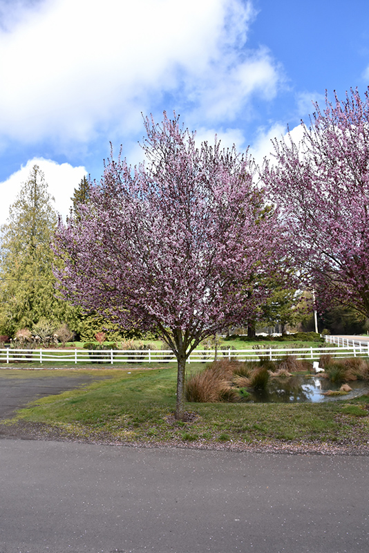 A colorful front yard accent tree for the average home landscape, featuring a cloud of light pink flowers in spring and deep purple foliage all season long, ornamental growth habit, hardier and more compact than similar selections of this species