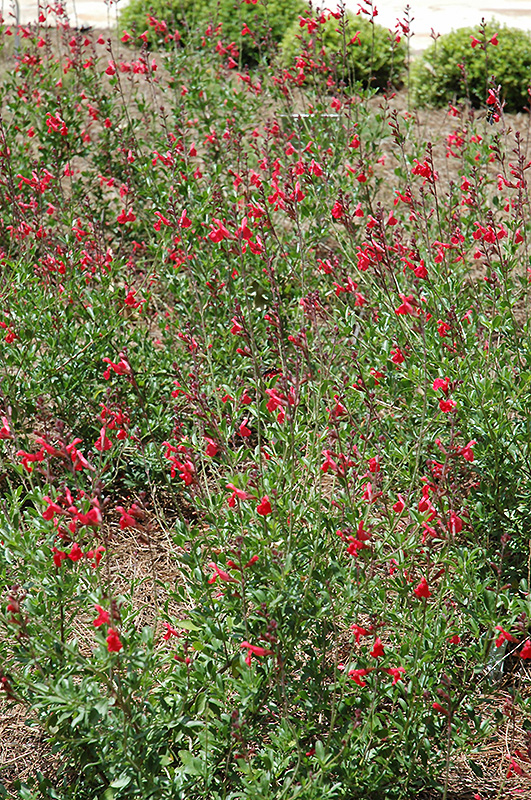 Coral Autumn Sage will grow to be about 24 inches tall at maturity, with a spread of 24 inches. When grown in masses or used as a bedding plant, individual plants should be spaced approximately 18 inches apart. Although it's not a true annual, this plant can be expected to behave as an annual in our climate if left outdoors over the winter, usually needing replacement the following year. As such, gardeners should take into consideration that it will perform differently than it would in its native habitat.