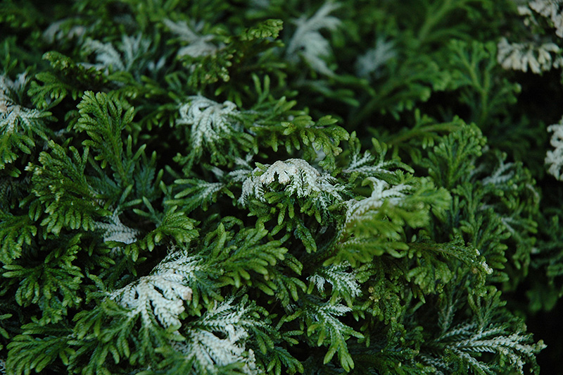 A very attractive fern relative that produces erect clumps of dark, evergreen, fan-like leaves with striking white variegation; this plant resembles a small rounded conifer; perfect for shaded moist areas and containers