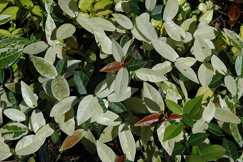 An interesting climbing groundcover with coppery emerging leaves that become dark glossy green with dramatic white variegation; very pale yellow-white flowers compliment the nice foliage in summer; great for lightly shaded woodland areas