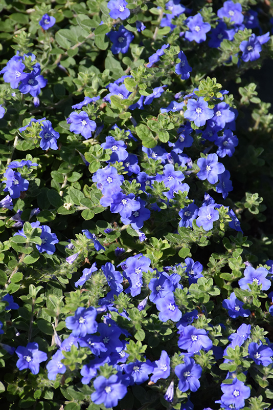This grayish-leafed variety produces dazzling true-blue flowers all season, without deadheading; heat and drought tolerant once established; a compact mounding and trailing habit great for containers, hanging baskets, and border fronts