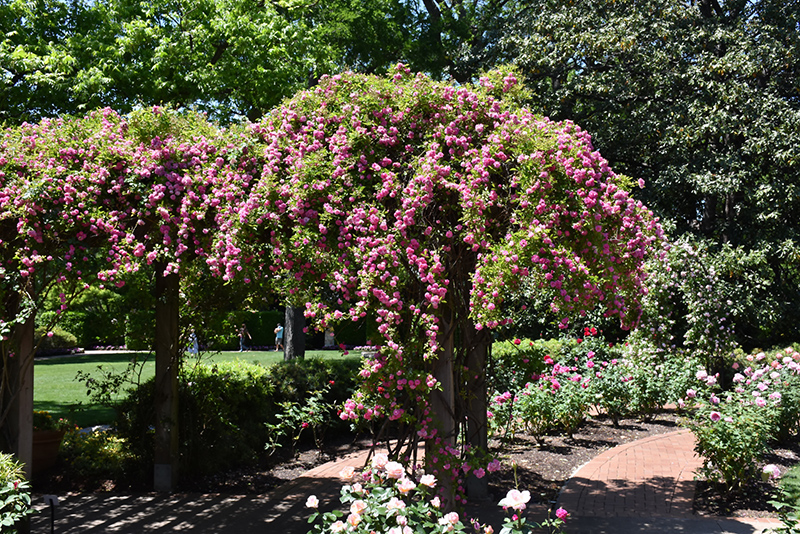 Climbing Pinkie Rose is a multi-stemmed deciduous woody vine with a twining and trailing habit of growth. Its average texture blends into the landscape, but can be balanced by one or two finer or coarser trees or shrubs for an effective composition.