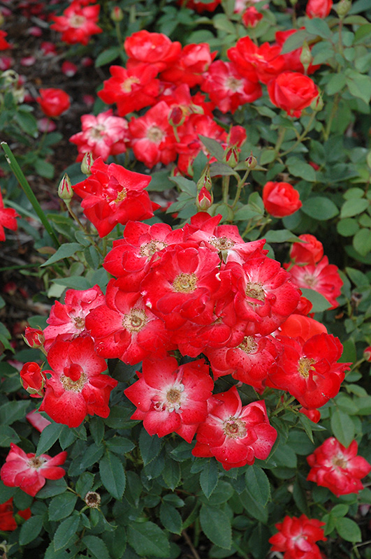 A stunning variety producing sprays of semi-double orange-scarlet blooms with white centers; dense dark green foliage provides the perfect contrast to make this shrub truly stand out