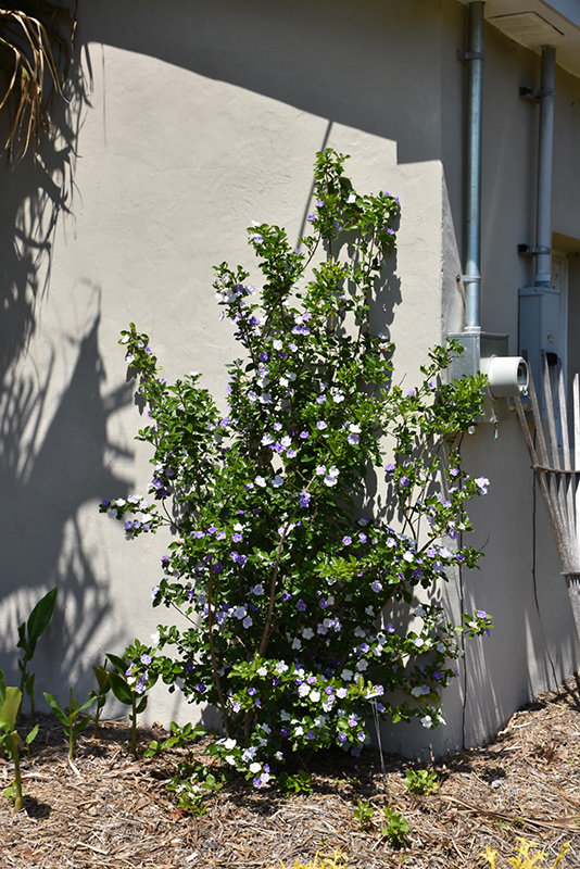 This variety is spectacular in bloom; pansy-like flowers open deep purple, progress to lavender and then finally white, showing all three colors on the plant; perfect for the shrub border or containers; can be maintained as a small tree with pruning