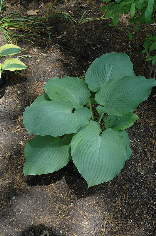This one has broad, pointed leaves of blue-green, that arch gently and have lightly waving edges; pale lavender flowers on stout scapes in mid-summer; perfect for shade and woodland gardens