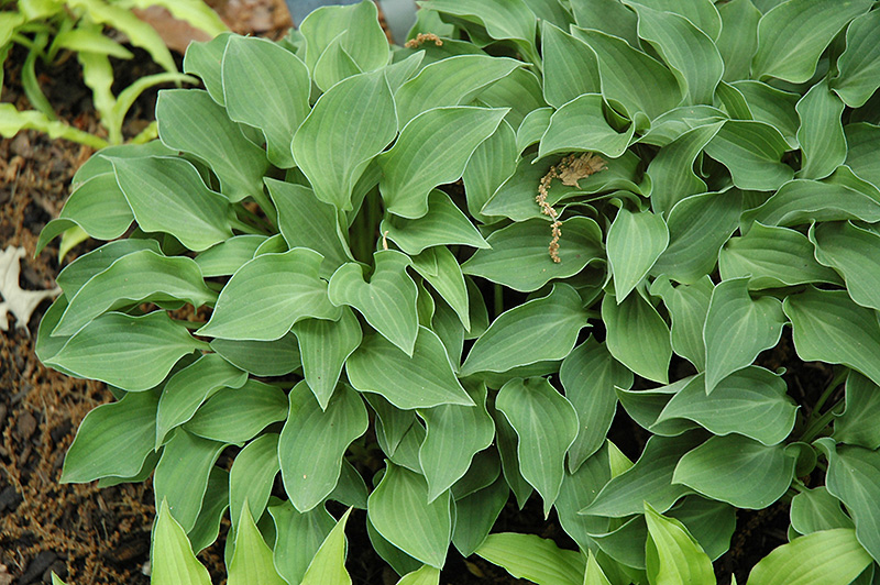 Tot Tot Hosta will grow to be about 7 inches tall at maturity extending to 14 inches tall with the flowers, with a spread of 21 inches. When grown in masses or used as a bedding plant, individual plants should be spaced approximately 16 inches apart. Its foliage tends to remain low and dense right to the ground. It grows at a slow rate, and under ideal conditions can be expected to live for approximately 10 years. As an herbaceous perennial, this plant will usually die back to the crown each winter, and will regrow from the base each spring. Be careful not to disturb the crown in late winter when it may not be readily seen!