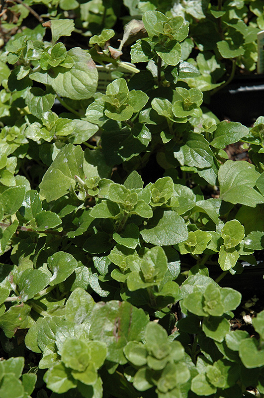A mint-like, evergreen trailing herb, producing a carpet of beautiful dark green, glossy, aromatic foliage; great for containers, and as a light shade groundcover; do not overwater