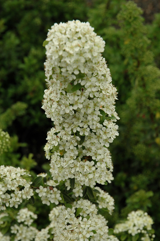 A broadleaf evergreen which features brilliant orange fruit in fall lasting throughout winter, very showy, also bears pretty white flower clusters in spring; needs full sun and well-drained soil; fireblight resistant, but not as cold hardy as the species