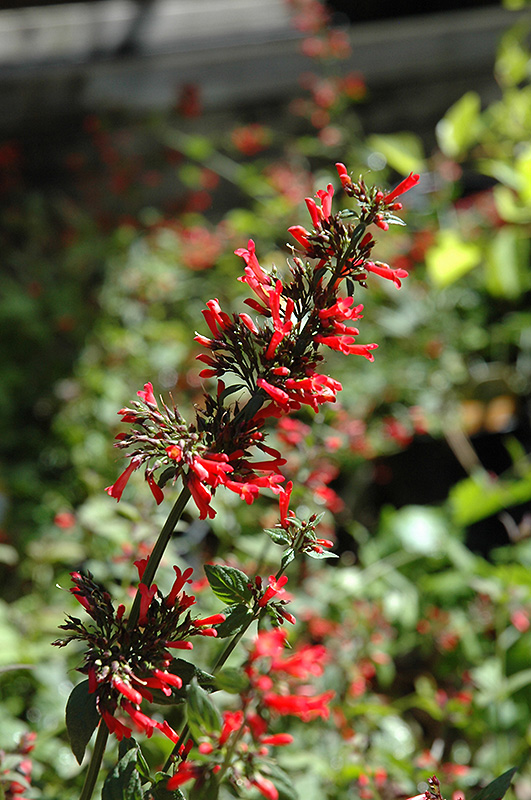 This broadleaf variety produces dense clusters of striking red-orange tubular flowers at the end of gracefully arching stalks; flowers better in full sun and is drought tolerant once established; great for containers and baskets