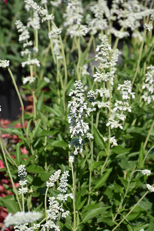 Augusta Duelberg Salvia has masses of beautiful spikes of fragrant white flowers rising above the foliage from late spring to mid fall, which are most effective when planted in groupings. The flowers are excellent for cutting. Its fragrant pointy leaves remain green in colour throughout the season.