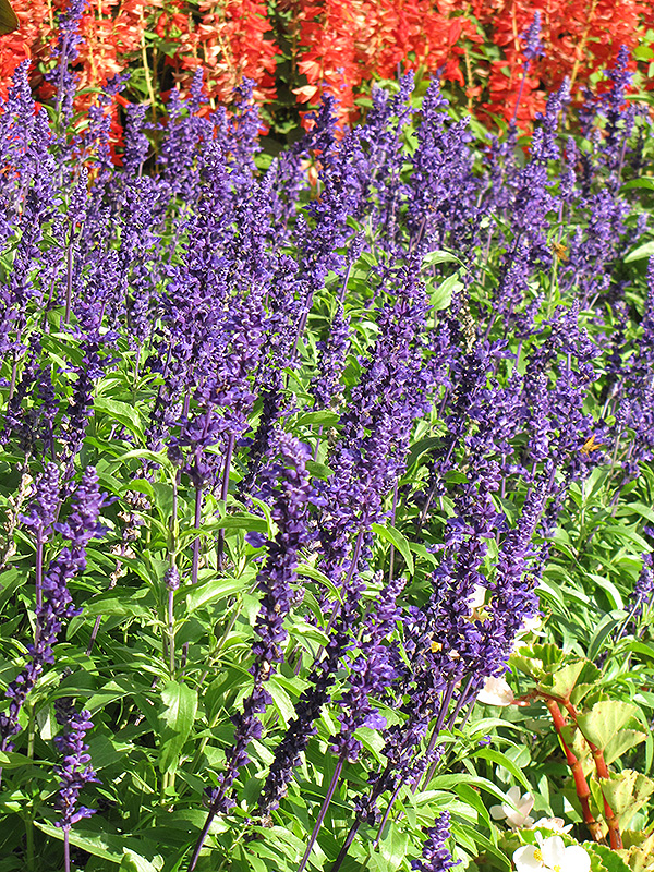 Blue Bedder Salvia is an herbaceous annual with an upright spreading habit of growth. Its medium texture blends into the garden, but can always be balanced by a couple of finer or coarser plants for an effective composition.