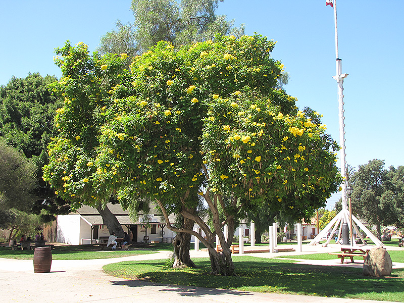 Yellow Trumpetbush is a fine choice for the garden, but it is also a good selection for planting in outdoor pots and containers. With its upright habit of growth, it is best suited for use as a 'thriller' in the 'spiller-thriller-filler' container combination; plant it near the center of the pot, surrounded by smaller plants and those that spill over the edges. It is even sizeable enough that it can be grown alone in a suitable container. Note that when growing plants in outdoor containers and baskets, they may require more frequent waterings than they would in the yard or garden.