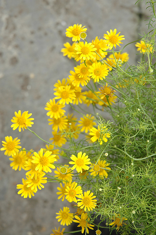 This variety features bright yellow daisy-like flowers and aromatic foliage that is finely divided into narrow, needle-like segments; drought tolerant and likes sandy, well drained soil; great for edging, border fronts, or containers