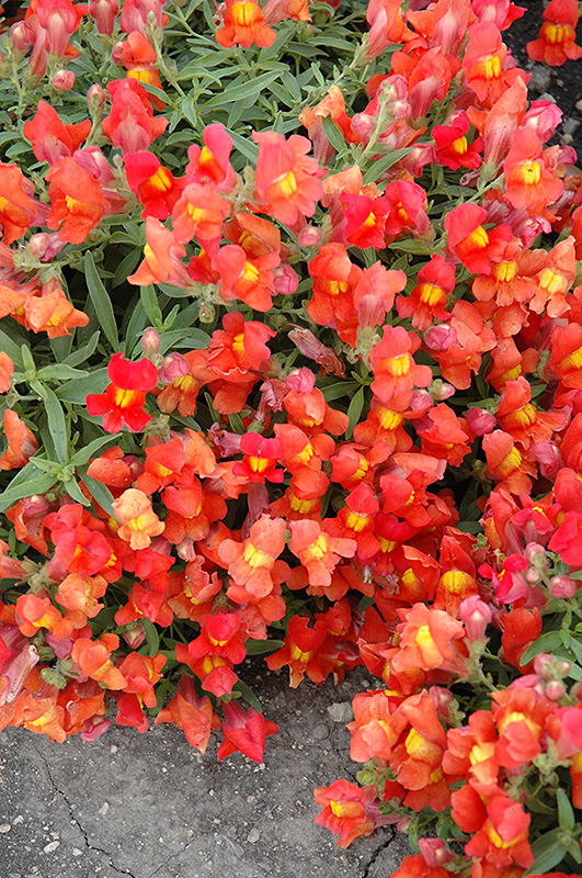 Candy Showers Orange Snapdragon is an herbaceous annual with a trailing habit of growth, eventually spilling over the edges of hanging baskets and containers. Its relatively fine texture sets it apart from other garden plants with less refined foliage.