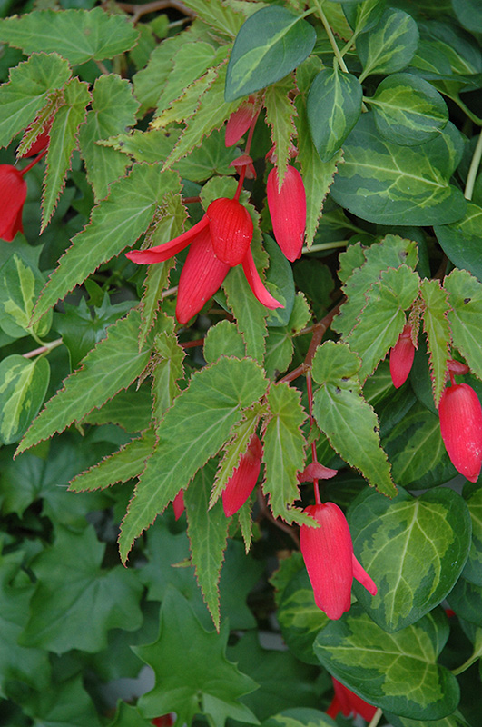 Million Kisses® Devotion Begonia features dainty nodding scarlet bell-shaped flowers with orange overtones at the ends of the stems from mid spring to mid fall. Its attractive serrated narrow leaves remain green in colour throughout the year.