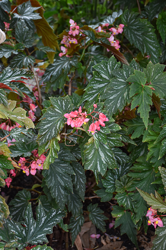 This large cane variety has highly ornamental leaves that are dark green with silver spots with deep ridges; a bushy habit that branches freely; clusters of bright pink flowers from spring to fall; great for garden beds or containers