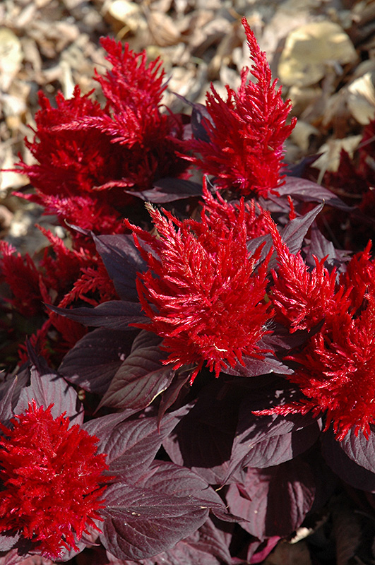 Chinatown Red Plumed Celosia features showy plumes of scarlet flowers rising above the foliage from early summer to mid fall. The flowers are excellent for cutting. Its pointy leaves remain burgundy in colour throughout the season.