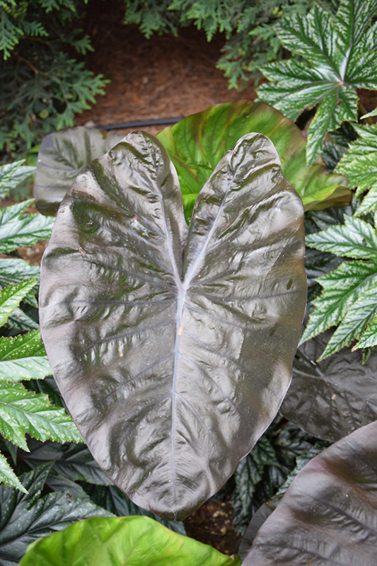 Royal Hawaiian® Black Coral Elephant Ear is primarily valued in the landscape or garden for its cascading habit of growth. Its attractive enormous heart-shaped leaves remain burgundy in colour with showy black variegation and tinges of dark red throughout the season.
