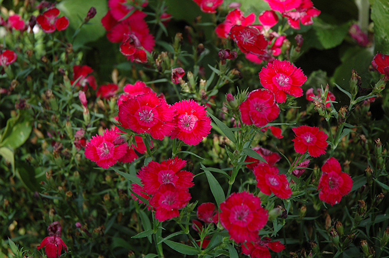 Ideal Select™ Red Pinks is smothered in stunning fragrant hot pink frilly flowers with a scarlet ring at the ends of the stems from late spring to early fall. The flowers are excellent for cutting. Its attractive narrow leaves remain green in colour throughout the year.