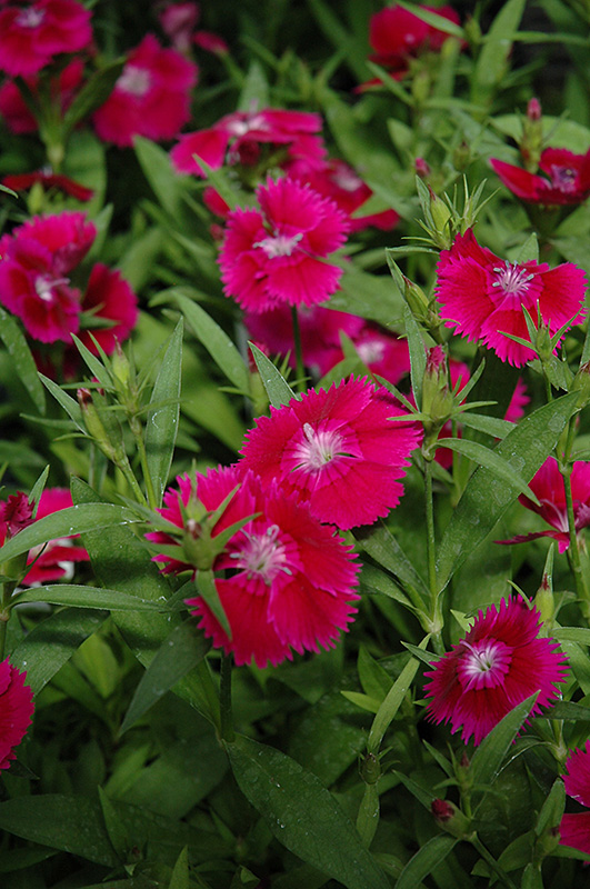 Ideal Select™ Violet Pinks is smothered in stunning fragrant violet frilly flowers with white eyes and a scarlet ring at the ends of the stems from late spring to early fall. The flowers are excellent for cutting. Its attractive narrow leaves remain green in colour throughout the year.