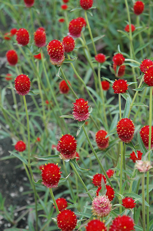 Qis Red Gomphrena is a fine choice for the garden, but it is also a good selection for planting in outdoor pots and containers. With its upright habit of growth, it is best suited for use as a 'thriller' in the 'spiller-thriller-filler' container combination; plant it near the center of the pot, surrounded by smaller plants and those that spill over the edges. Note that when growing plants in outdoor containers and baskets, they may require more frequent waterings than they would in the yard or garden.