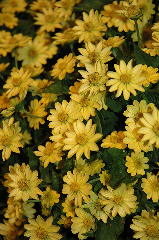 One of the easiest flowering annuals to grow; large, butter yellow blooms with gold centers, cover neat mounds throughout the season with no need to deadhead spent blooms; tolerant of shade and heat