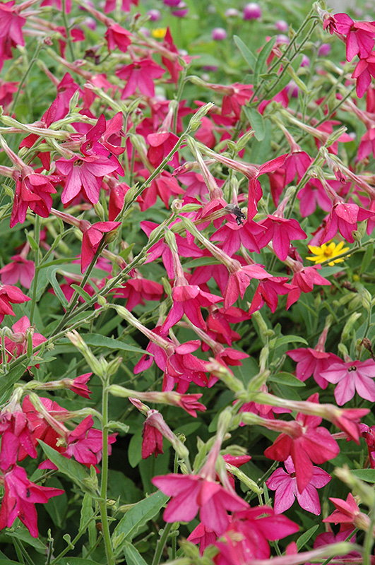 Nicki Red Flowering Tobacco will grow to be about 16 inches tall at maturity, with a spread of 12 inches. When grown in masses or used as a bedding plant, individual plants should be spaced approximately 8 inches apart. Its foliage tends to remain dense right to the ground, not requiring facer plants in front. Although it's not a true annual, this fast-growing plant can be expected to behave as an annual in our climate if left outdoors over the winter, usually needing replacement the following year. As such, gardeners should take into consideration that it will perform differently than it would in its native habitat.