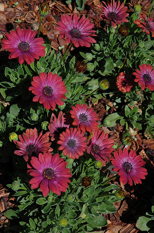 Fortunette Red Flare African Daisy will grow to be about 10 inches tall at maturity, with a spread of 14 inches. When grown in masses or used as a bedding plant, individual plants should be spaced approximately 12 inches apart. Its foliage tends to remain low and dense right to the ground. Although it's not a true annual, this fast-growing plant can be expected to behave as an annual in our climate if left outdoors over the winter, usually needing replacement the following year. As such, gardeners should take into consideration that it will perform differently than it would in its native habitat.