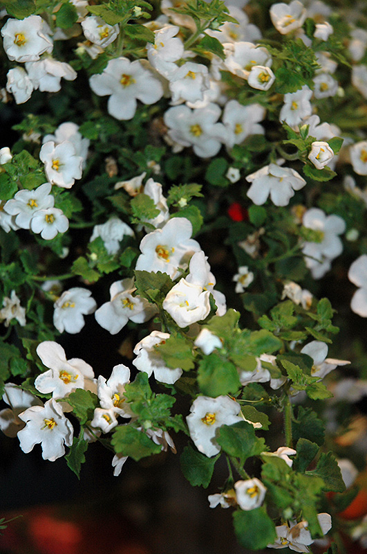 Calypso Jumbo White Bacopa will grow to be about 10 inches tall at maturity, with a spread of 18 inches. When grown in masses or used as a bedding plant, individual plants should be spaced approximately 15 inches apart. Its foliage tends to remain low and dense right to the ground. Although it's not a true annual, this fast-growing plant can be expected to behave as an annual in our climate if left outdoors over the winter, usually needing replacement the following year. As such, gardeners should take into consideration that it will perform differently than it would in its native habitat.