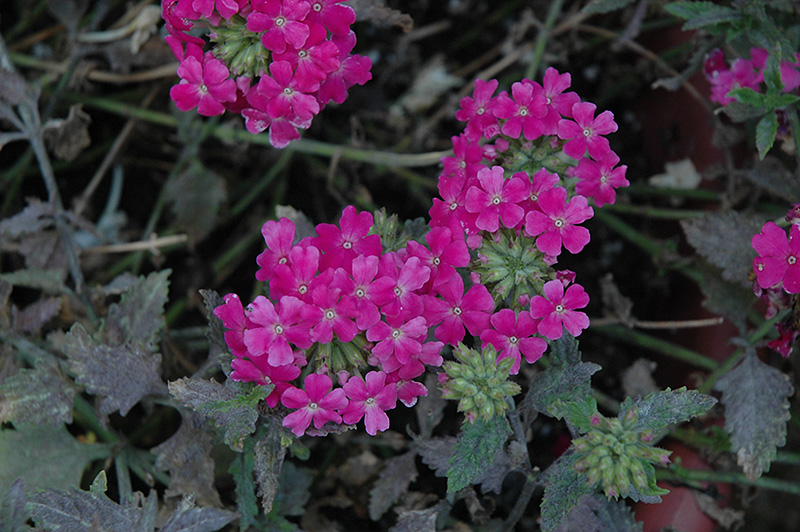 Vegas Plus Hot Pink Verbena will grow to be about 8 inches tall at maturity, with a spread of 18 inches. When grown in masses or used as a bedding plant, individual plants should be spaced approximately 14 inches apart. Its foliage tends to remain low and dense right to the ground. Although it's not a true annual, this fast-growing plant can be expected to behave as an annual in our climate if left outdoors over the winter, usually needing replacement the following year. As such, gardeners should take into consideration that it will perform differently than it would in its native habitat.