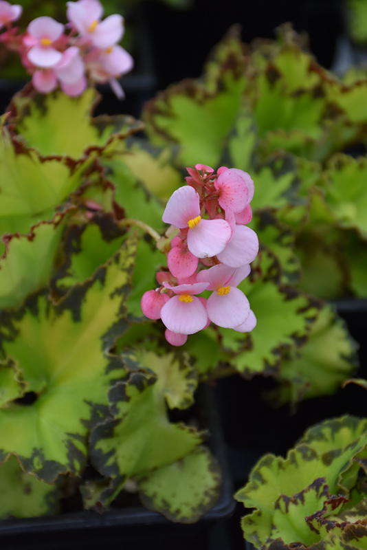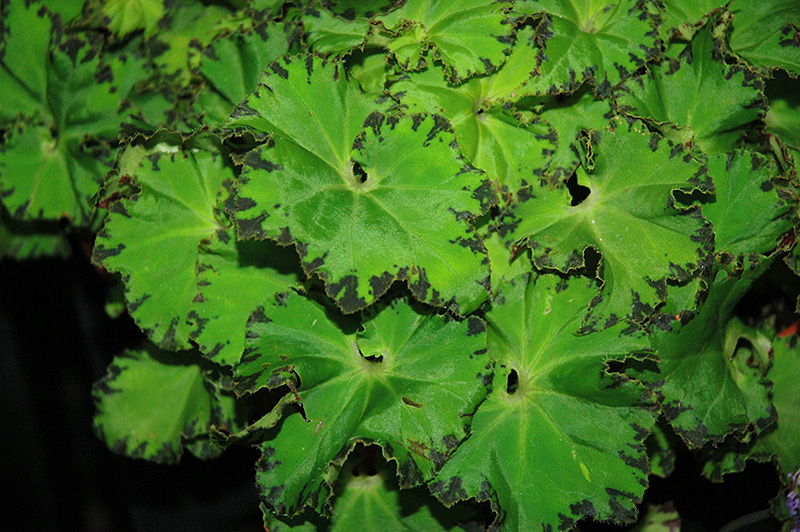 Jive Begonia's attractive crinkled round palmate leaves emerge chartreuse in spring, turning green in colour with distinctive black edges throughout the season on a plant with a mounded habit of growth.