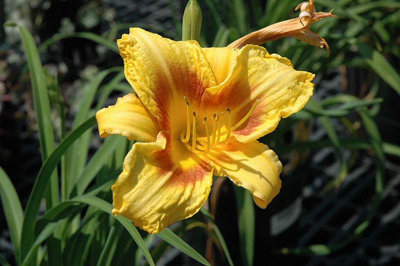 Bumble Bee Daylily features bold yellow trumpet-shaped flowers with a dark red ring at the ends of the stems in mid summer. The flowers are excellent for cutting. Its grassy leaves remain green in colour throughout the season.