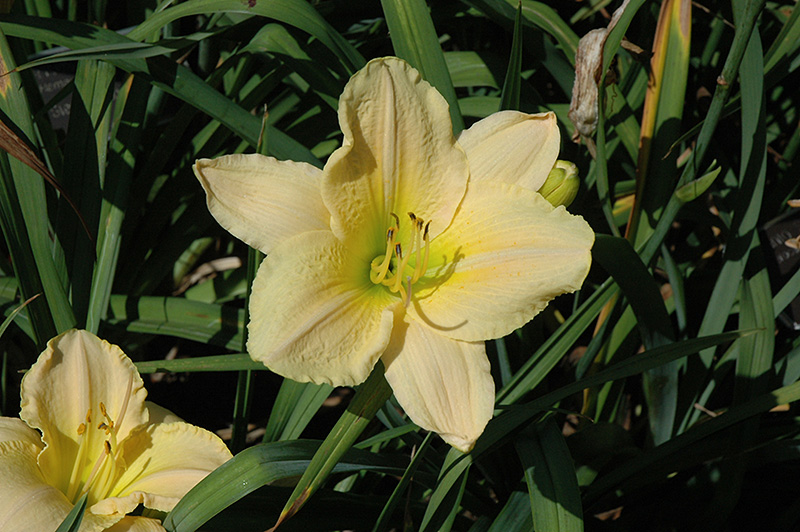 Charming, cream-tan trumpets with bright yellow throats and lightly ruffled edges; great grassy texture and form; tetraploid; a visually pleasing addition to the garden or border