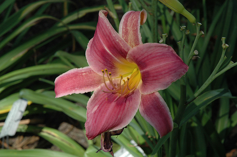 Grape Harvest Daylily features bold rose trumpet-shaped flowers with purple overtones, yellow throats and a plum purple ring at the ends of the stems in mid summer. The flowers are excellent for cutting. Its grassy leaves remain green in colour throughout the season.