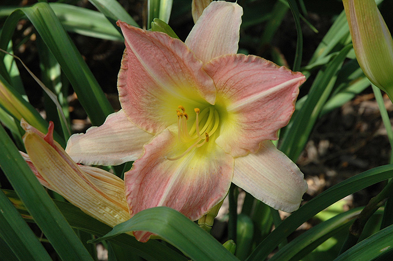 Painter's Poet Daylily is an herbaceous perennial with a shapely form and gracefully arching foliage. Its medium texture blends into the garden, but can always be balanced by a couple of finer or coarser plants for an effective composition.