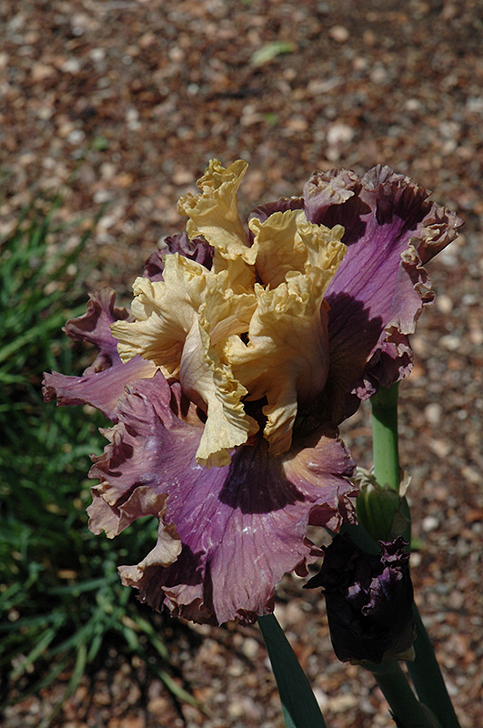 This tall, interesting iris produces lovely pale yellow-beige blooms with violet falls and burnt tangerine beards; a stunning addition to the perennial border; also excellent massed in groupings in the garden; will quickly form dense colonies
