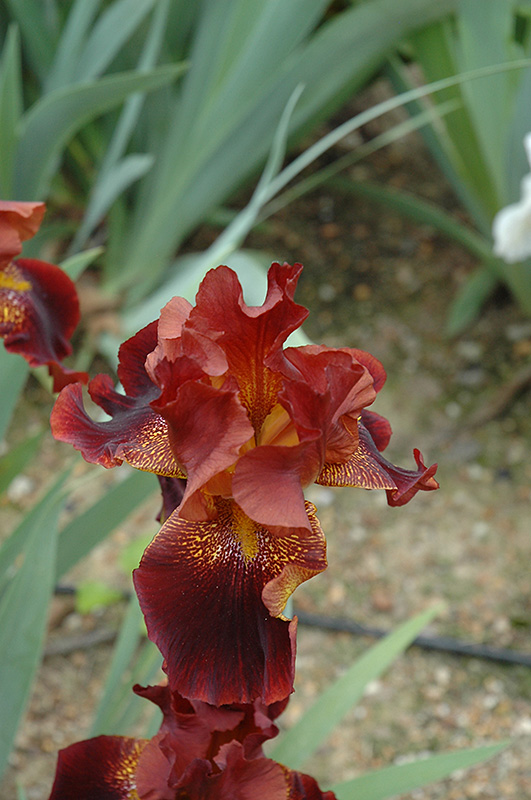 Chief Hematite Iris will grow to be about 24 inches tall at maturity extending to 3 feet tall with the flowers, with a spread of 24 inches. When grown in masses or used as a bedding plant, individual plants should be spaced approximately 18 inches apart. It grows at a medium rate, and under ideal conditions can be expected to live for approximately 10 years. As an herbaceous perennial, this plant will usually die back to the crown each winter, and will regrow from the base each spring. Be careful not to disturb the crown in late winter when it may not be readily seen!