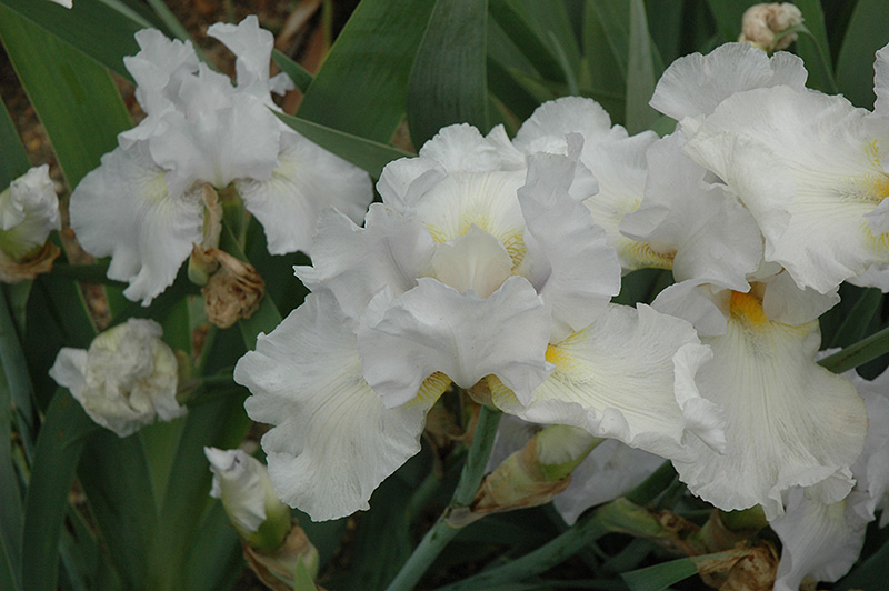 This elegant iris produces silvery-white frilly blooms with pale yellow beards; a stunning addition to the perennial border; also excellent massed in groupings in the garden; will quickly form dense colonies