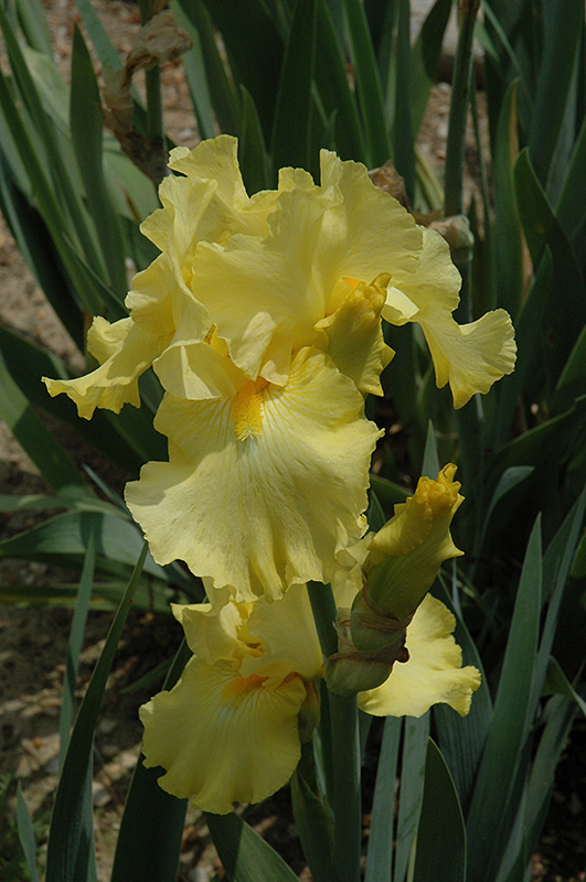 This attractive iris produces sunny, golden yellow blooms, with golden beards; a stunning addition to the perennial border; also excellent massed in groupings in the garden; will quickly form dense colonies