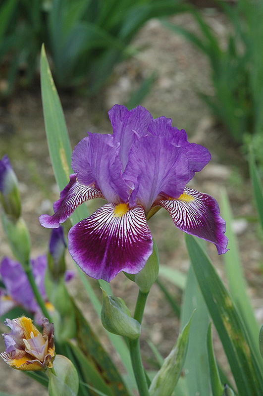 Missus Bee Iris will grow to be about 16 inches tall at maturity extending to 23 inches tall with the flowers, with a spread of 16 inches. When grown in masses or used as a bedding plant, individual plants should be spaced approximately 12 inches apart. It grows at a medium rate, and under ideal conditions can be expected to live for approximately 10 years. As an herbaceous perennial, this plant will usually die back to the crown each winter, and will regrow from the base each spring. Be careful not to disturb the crown in late winter when it may not be readily seen!
